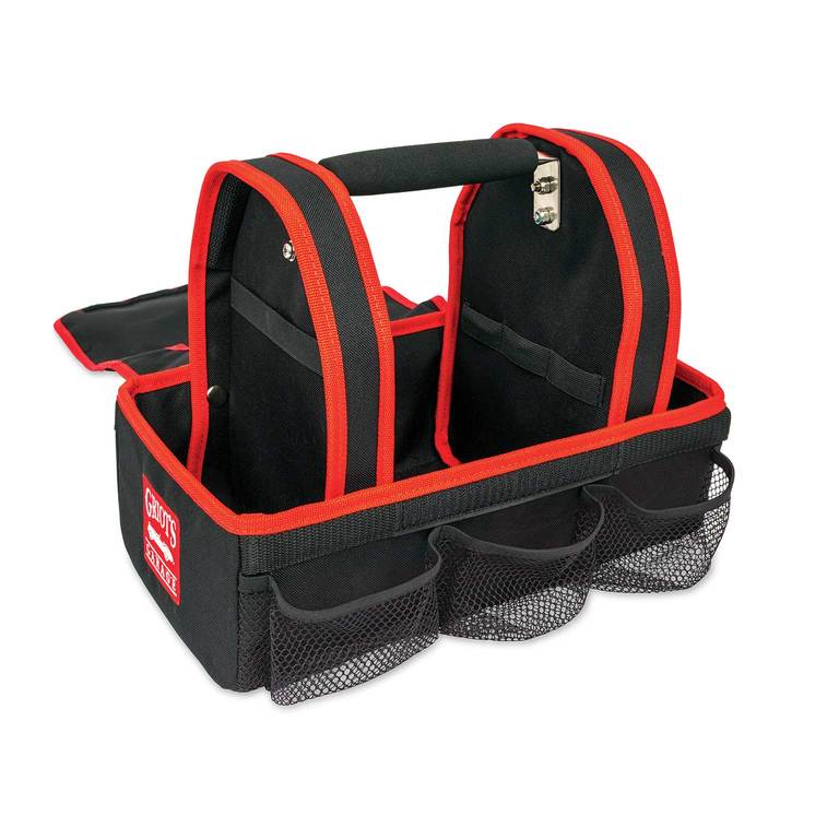 外側に3つ付いているメッシュポケットには8オンス、両側のポケットには16オンス、22オンスボトルが収納可能。その他にもスポンジパッドやホルダーなどを収納できます。