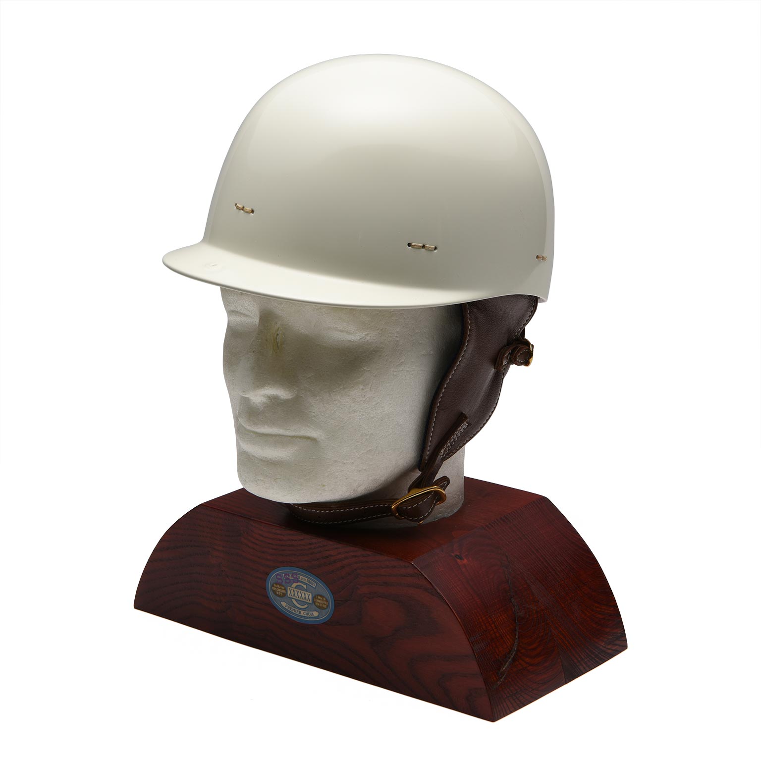 上品なアイボリー色がなんともクラシカルなヘルメットです。後頭部にはレザーがあしらわれており、ビンテージの雰囲気が漂います。ヒストリックカーやレーシングスクリーンのオープンカー、イベントで注目を集めること間違いなしです。ゴーグルと合わせて使用したり、専用のバイザーを装着してもおすすめです。