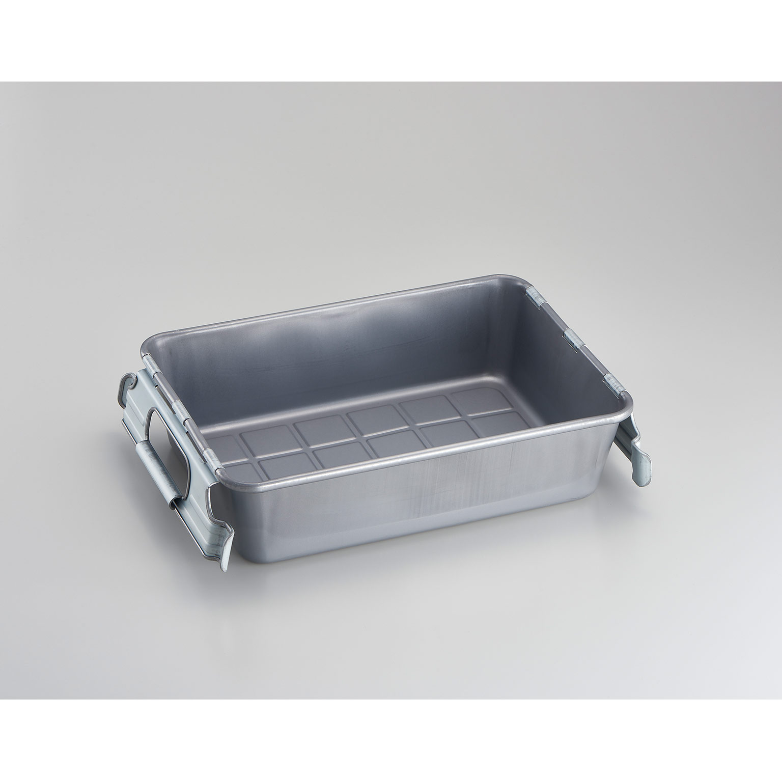 M-8が誕生したのはモノづくりの街、東大阪。昔から町工場でネジなどの細かなパーツを入れるなどして、多くの現場で採用されてています。M-8には蓋がないので、中に何が入っているか一望することもできます。昔から赤や青のM-8は、塗装で色分けをすることで、現場では部品の仕分けに使われてきました。樹脂製だと割れや凹凸ができてしまいますが、M-8は頑丈な鉄製なので丈夫です。昔から職人たちの現場をしっかり支えてきました。これがM-8のルーツです。