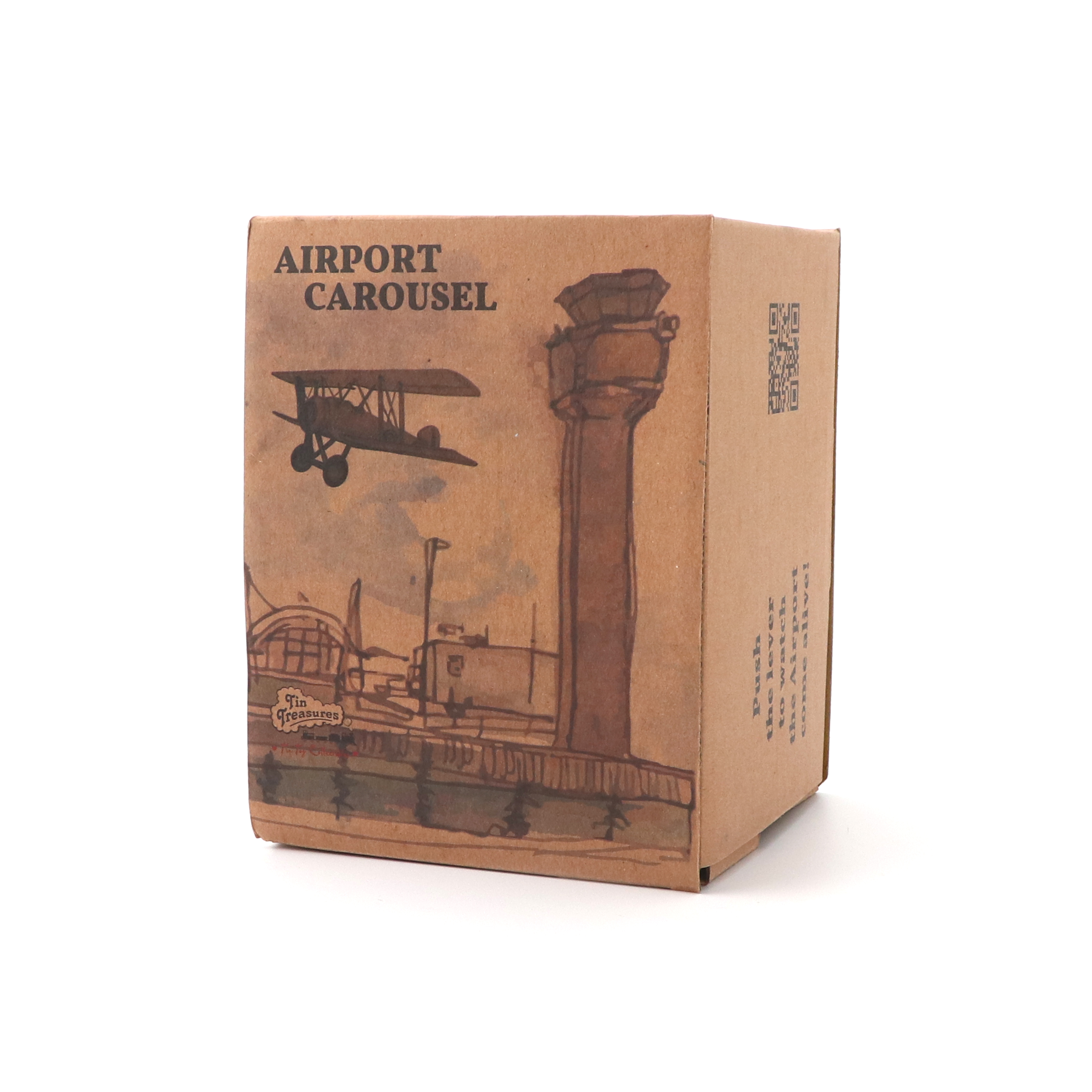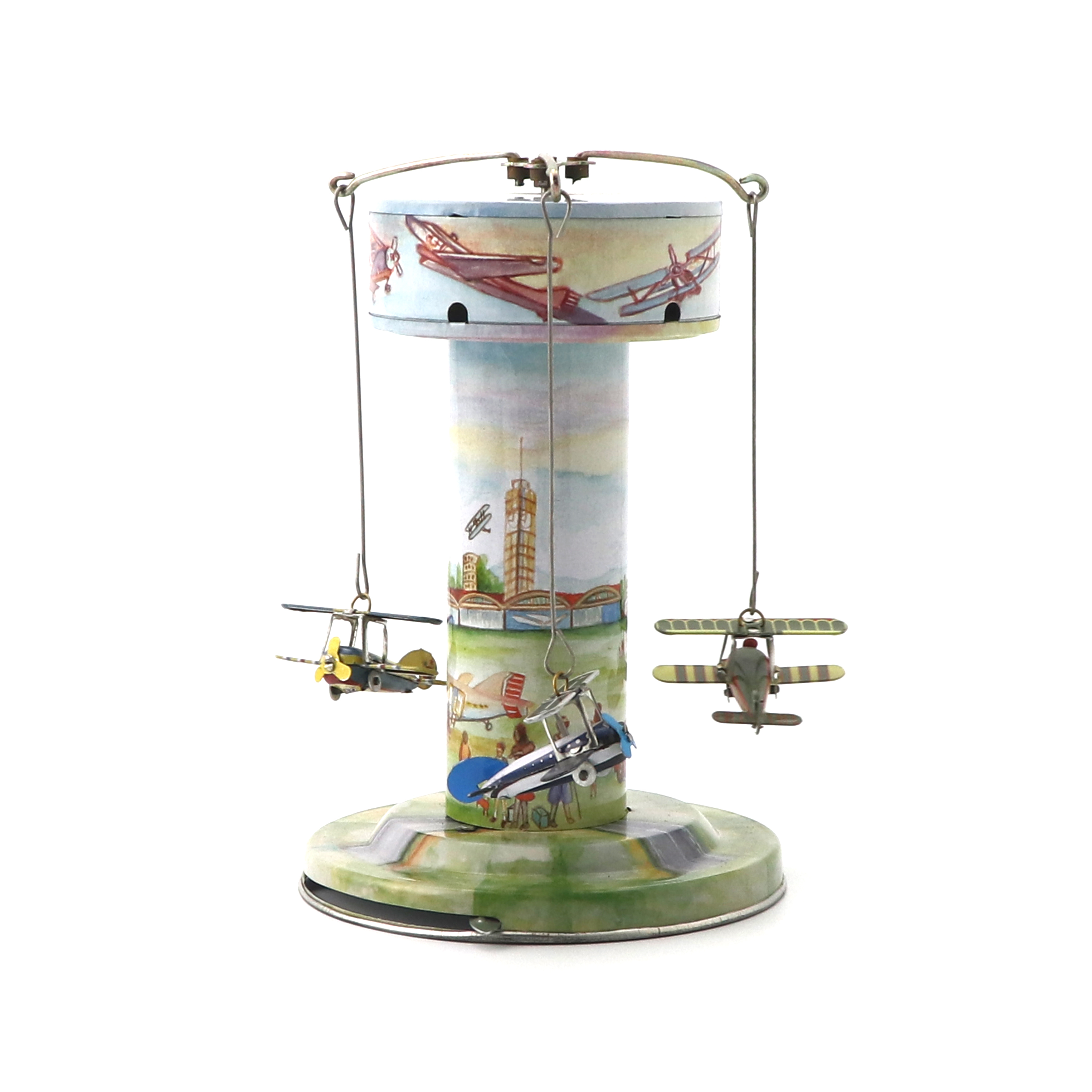 下部のレバーを引くと、その勢いで複葉機たちがくるくると回転します。レバーが戻るにつれてスピードがゆっくりと落ちていく、ゼンマイ式の動きが魅力です。