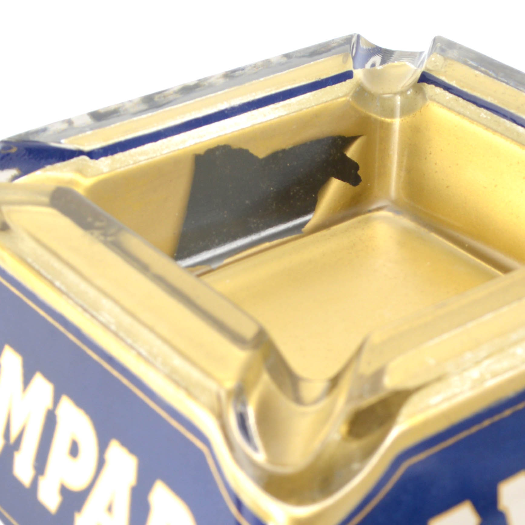 約175mm×175mmのアッシュトレイとしては大きなサイズに、各面に書かれた"CAMPARI"の大きなロゴがインパクト抜群。しかしながらガラス製ならではの透明感もあり、大胆さと軽やかさを兼ね備えたデザインになっています。
