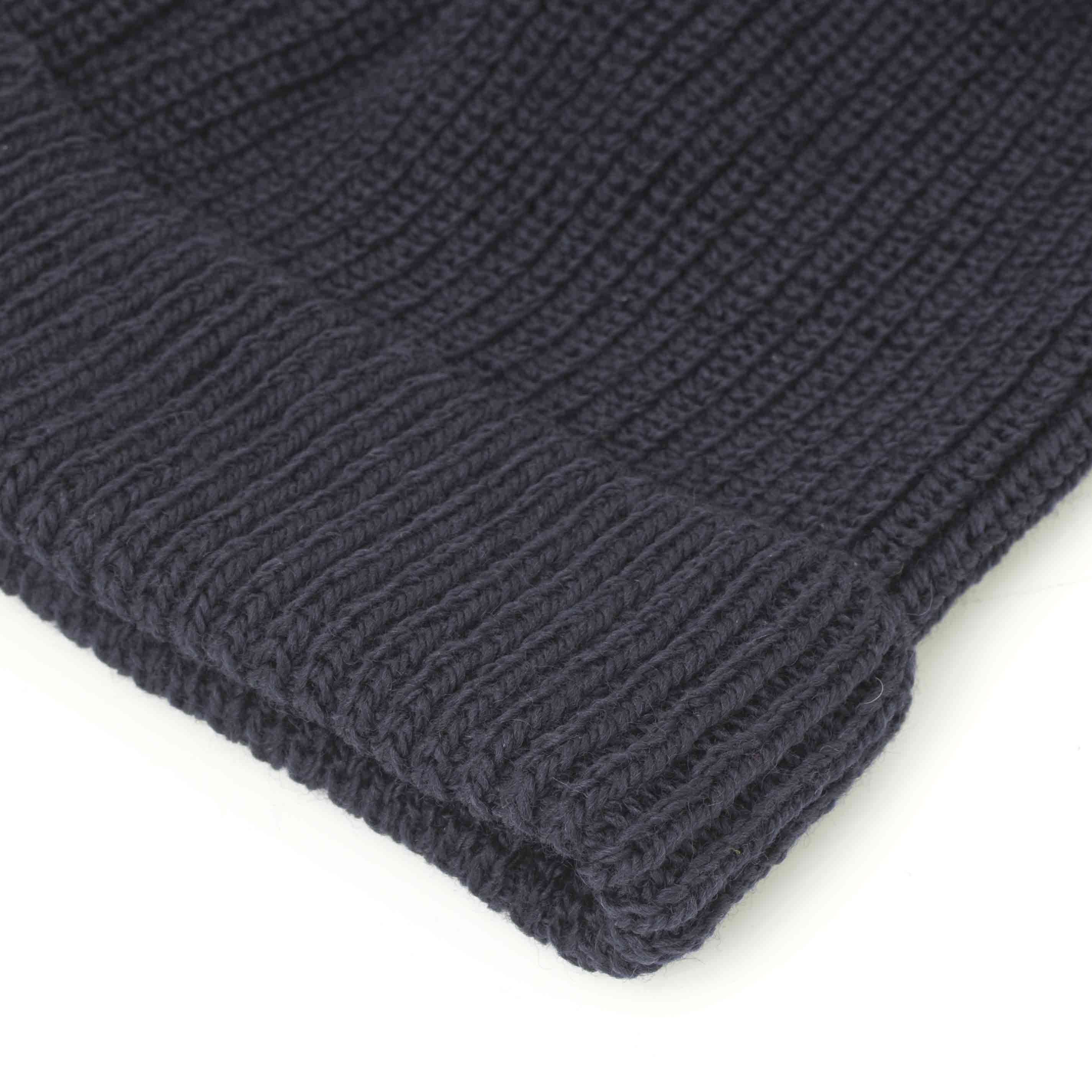 伝統的なリブ編みのフィッシャーマンビーニー(英国や北欧の漁師が着用していた伝統的な帽子を基にした、耳にかからないほど浅い丈で、折り返しのあるリブニットのニット帽)をモチーフにデザインされたニット帽です。