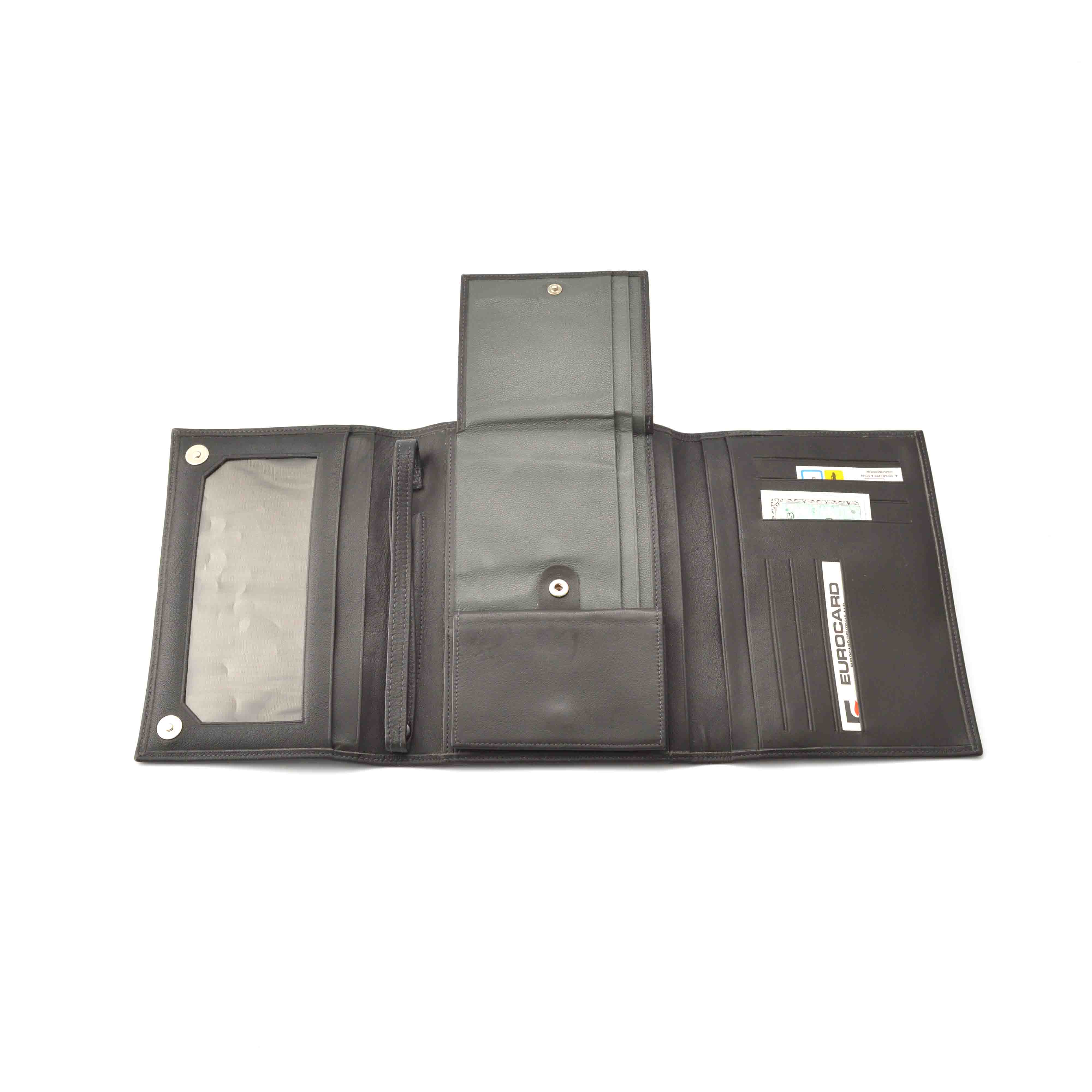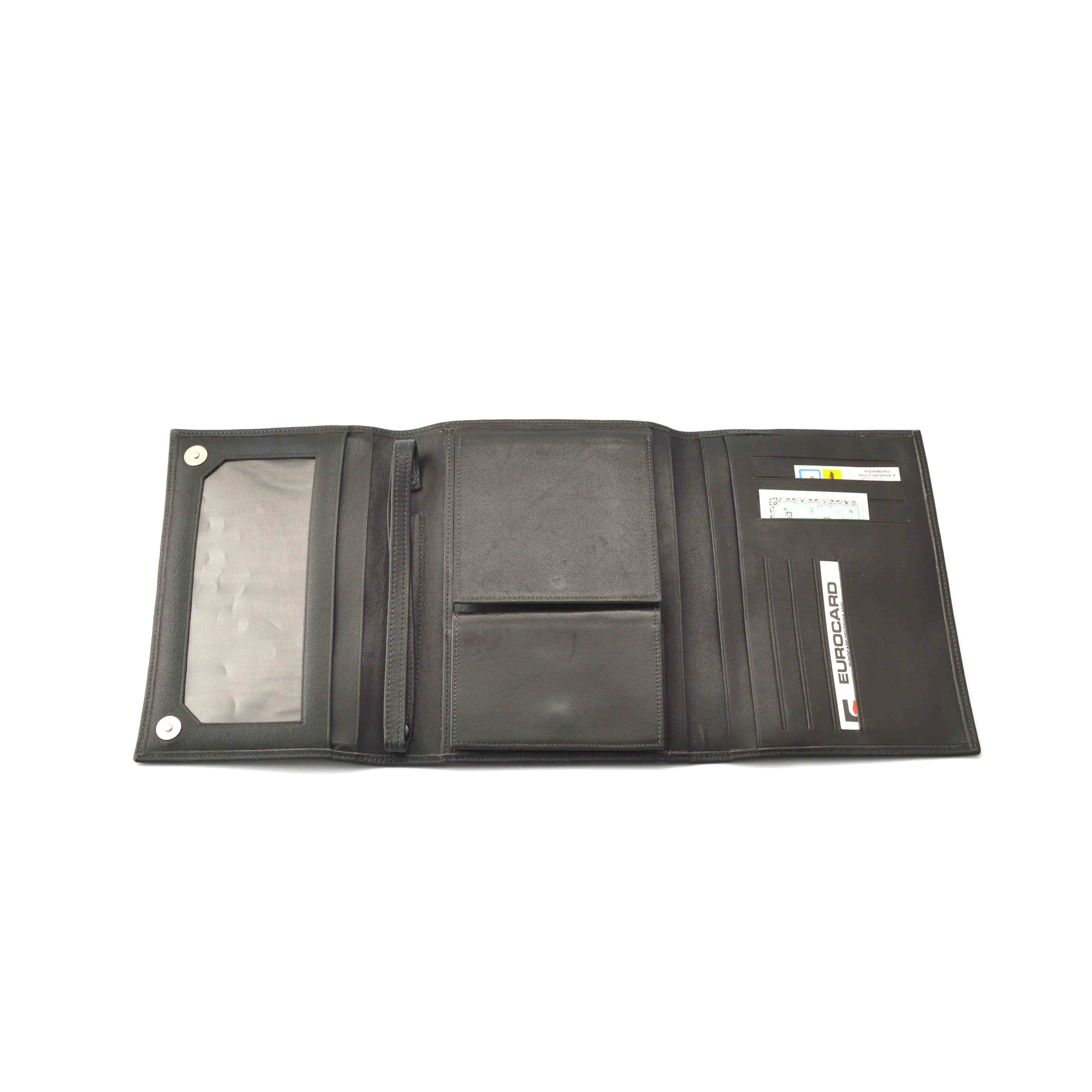 右面にはカードをしまっておけるスリットが8つ。左面には窓付きの大きなポケットがあります。