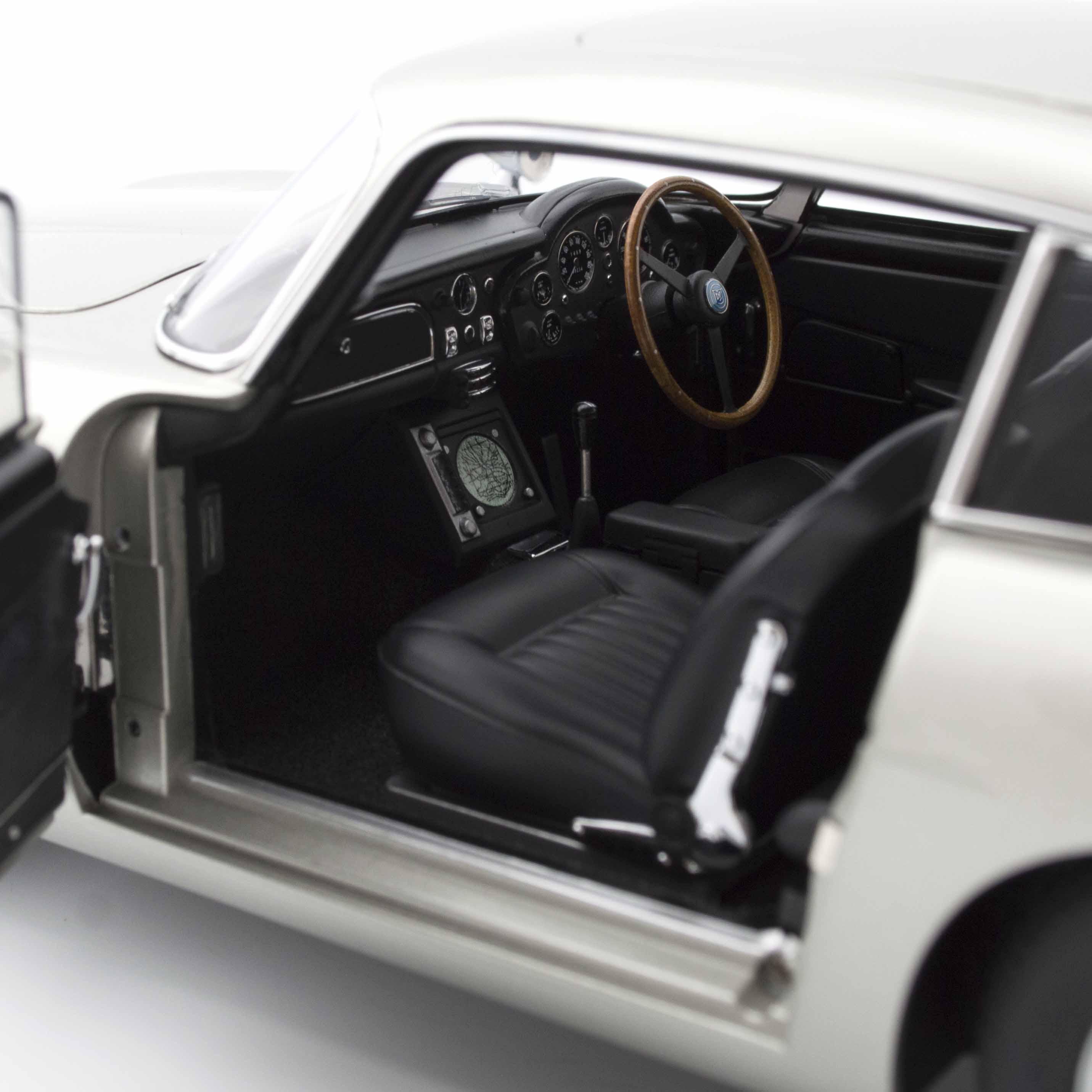 アストンマーティンDB5は、アストンマーティンが製造し、イタリアのカロッツェリア・ツーリング・スーパーレッジェーラがデザインした英国製グランドツアラーです。鋼管フレームにアルミパネルを被せるスーパーレッジェーラ工法のボディに軽合金製4リッター直列6気筒DOHCエンジンを搭載、最高速度240km/h以上を記録するスポーツクーペです。1963年から1965年にかけて生産されたDB5は、DB4の最終シリーズの進化形です。「DB」は、1947年から会社を築き上げたデイビッド・ブラウンのイニシャルに由来します。