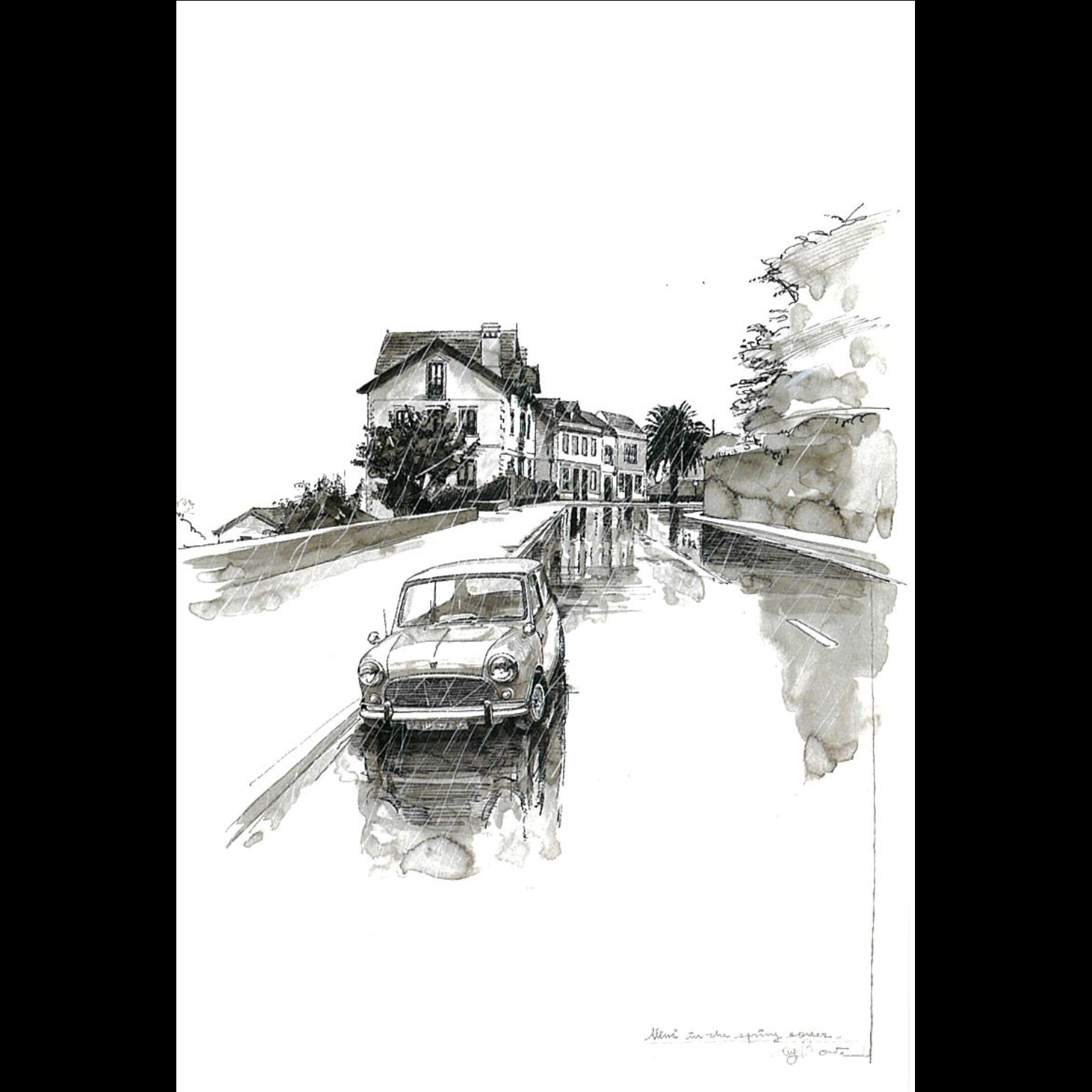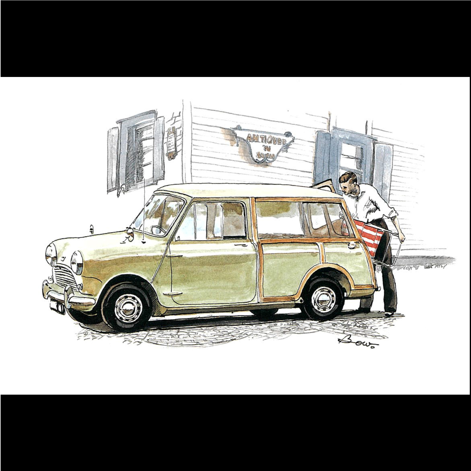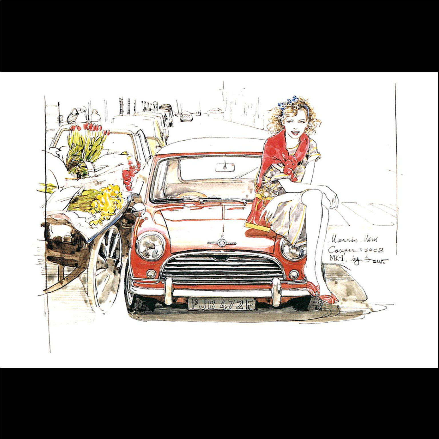 「カーマガジン」「サイクルワールド」「クラブマン」「カーグラフィック」「KAZI」など、各誌でクルマやバイク、ヨットやボートの絵、国産自動車メーカーのカタログなどの絵も多数手がけているBow。氏が描いたクルマたちのポストカード。