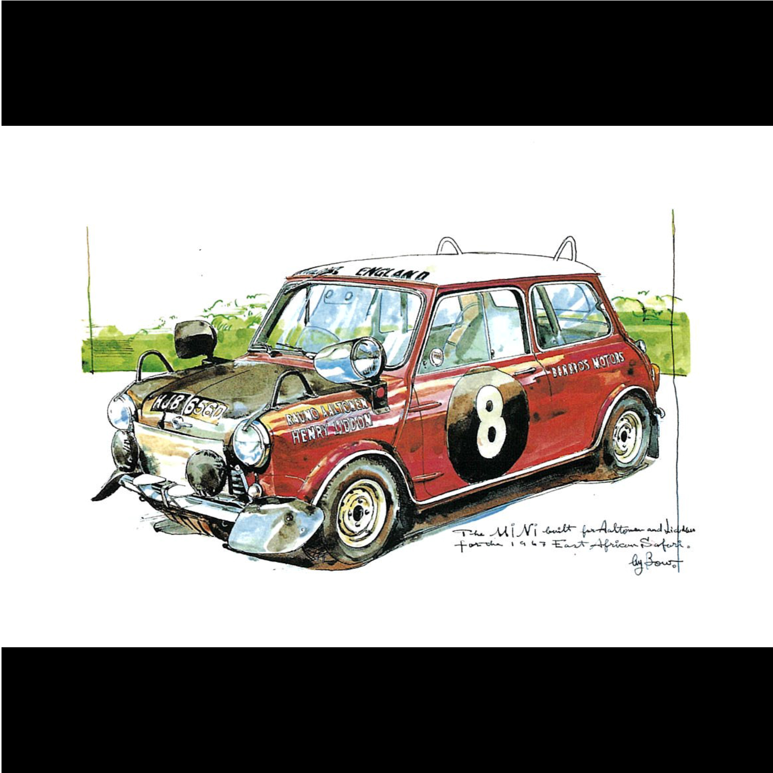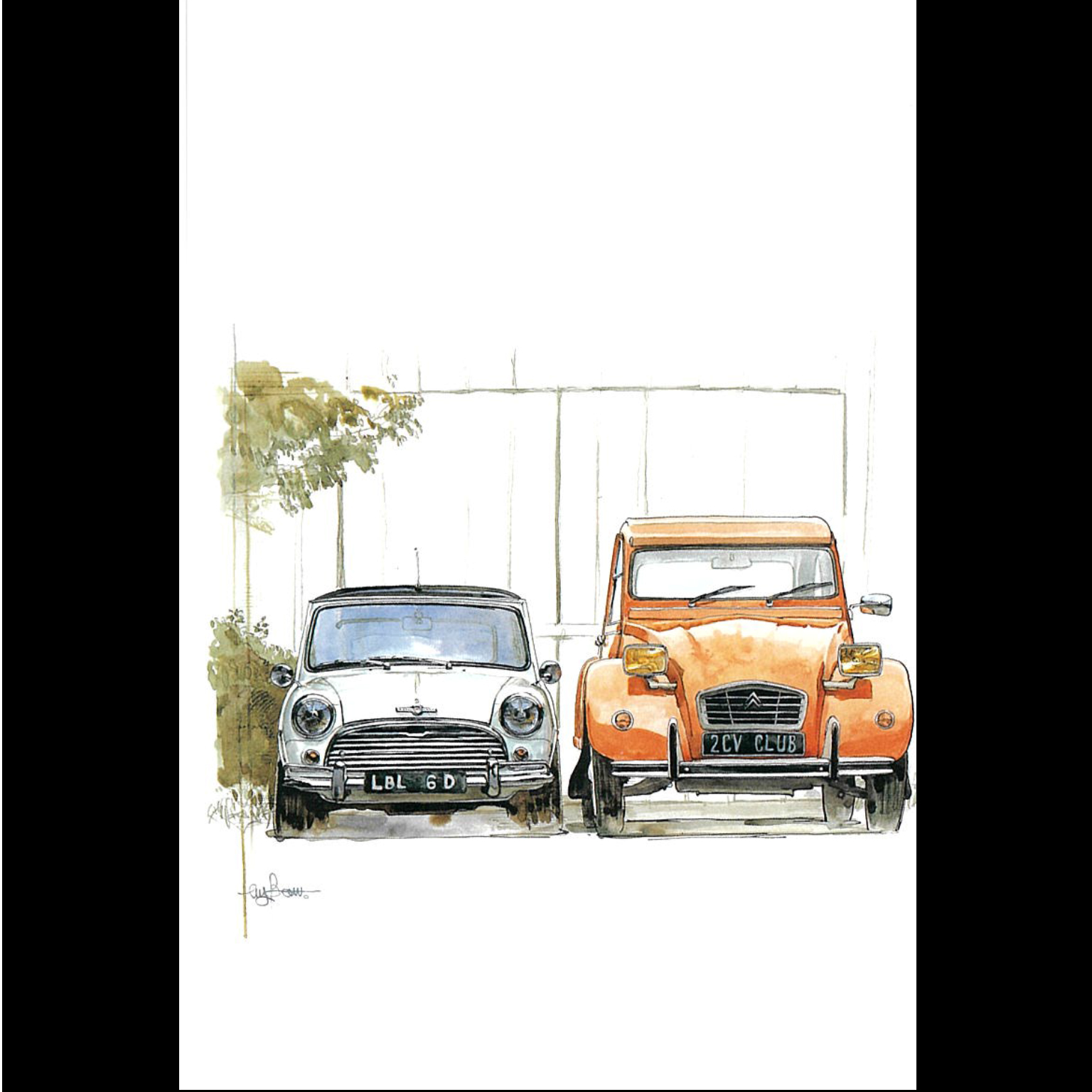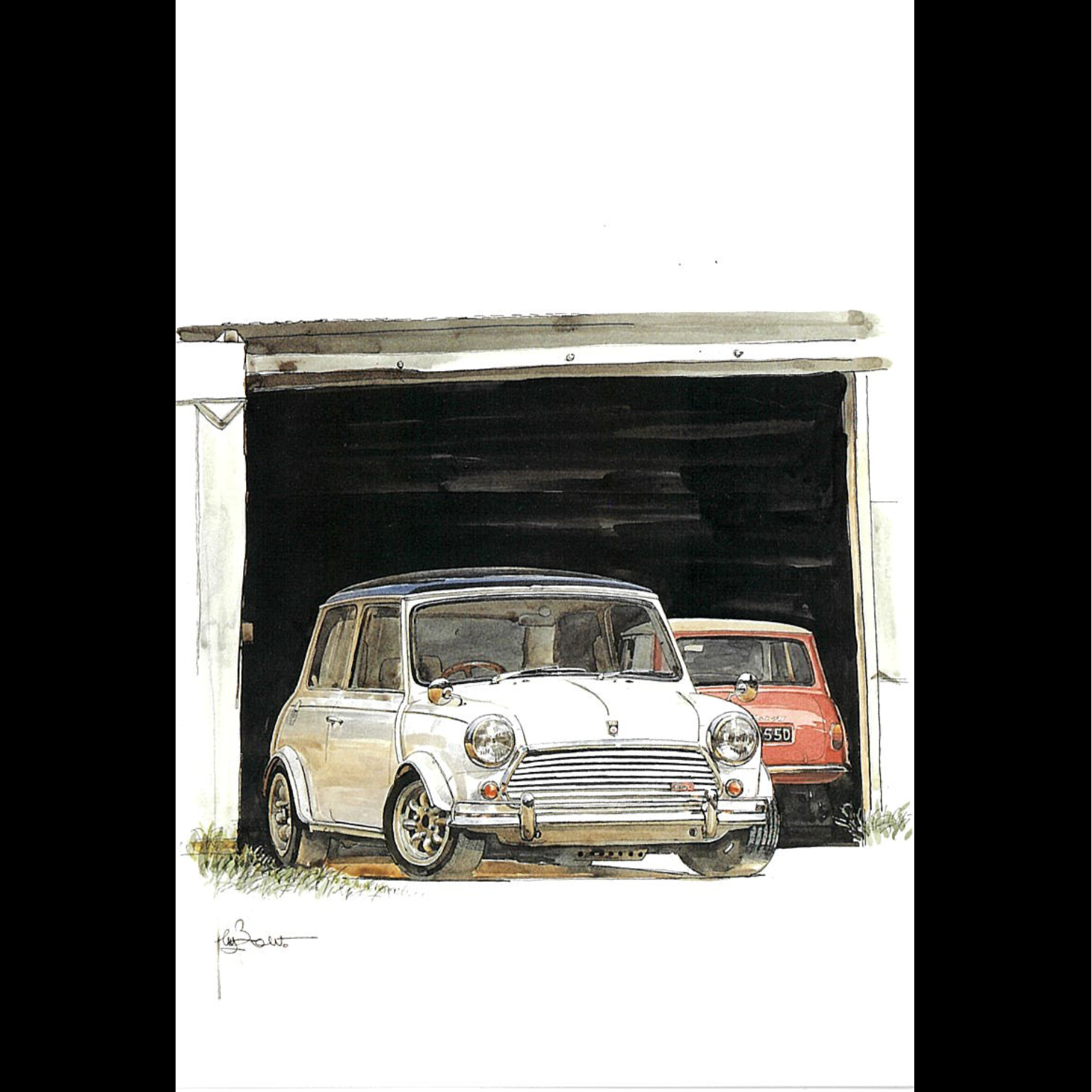 「カーマガジン」「サイクルワールド」「クラブマン」「カーグラフィック」「KAZI」など、各誌でクルマやバイク、ヨットやボートの絵、国産自動車メーカーのカタログなどの絵も多数手がけているBow。氏が描いたクルマたちのポストカード。