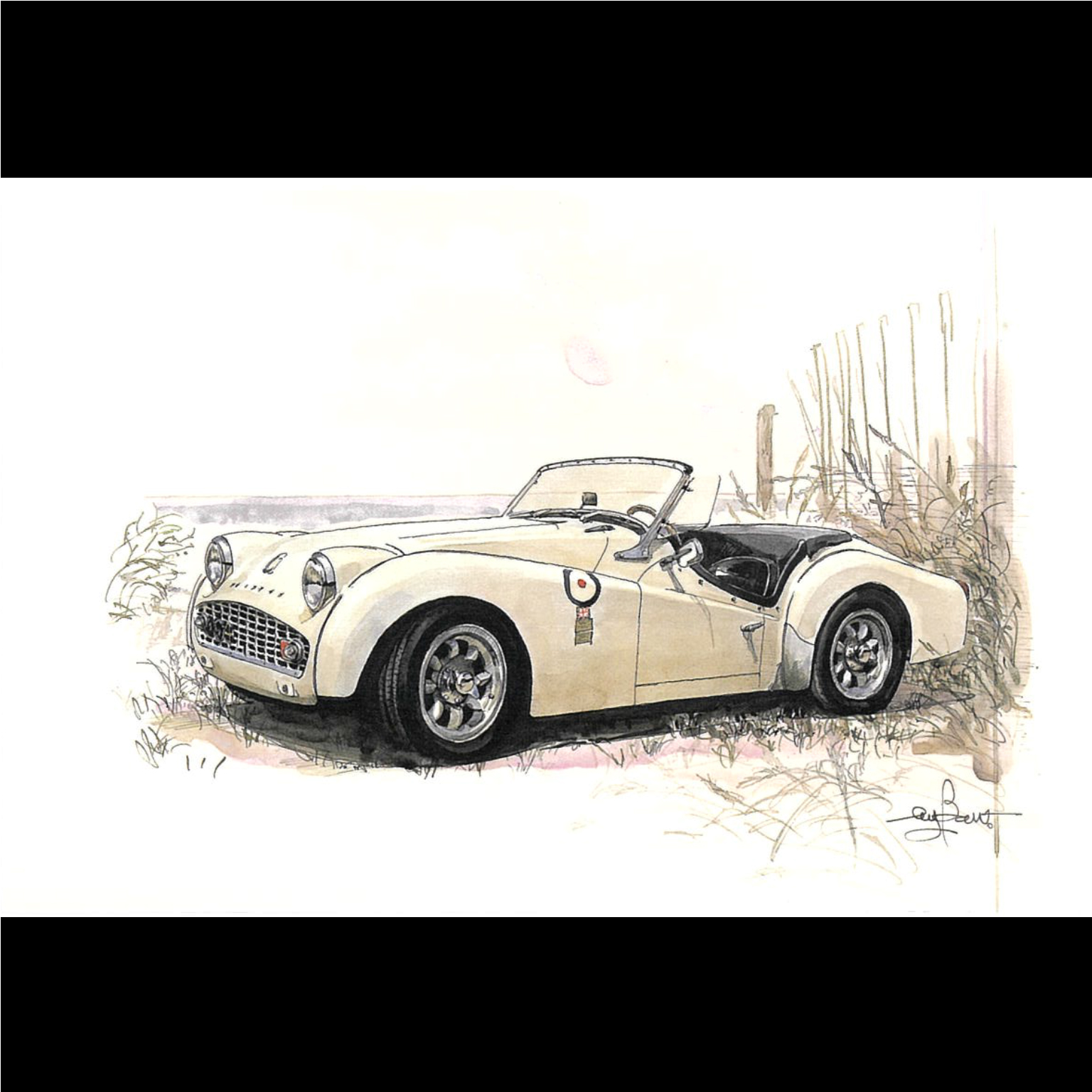 「カーマガジン」「サイクルワールド」「クラブマン」「カーグラフィック」「KAZI」など、各誌でクルマやバイク、ヨットやボートの絵、国産自動車メーカーのカタログなどの絵も多数手がけているBow。氏が描いたクルマたちのポストカード。